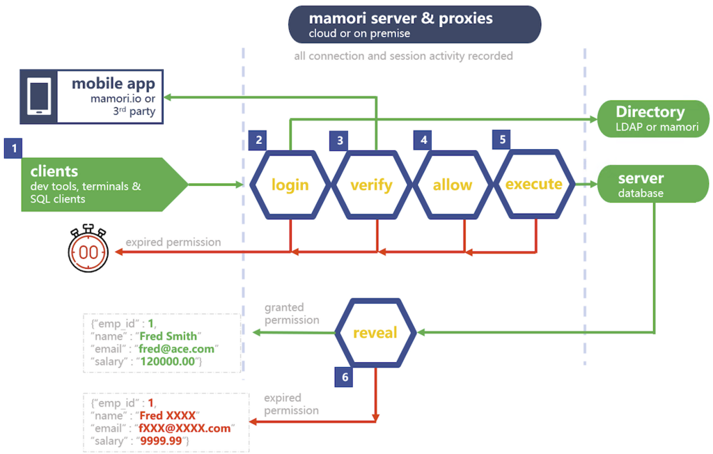 Mamori ช่วยให้คุณสามารถ กำหนดการควบคุมในระดับข้อมูล เพื่อให้ ข้อมูลสำคัญถูกบล็อกหรือปกปิด ทำให้ ไม่สามารถใช้งานได้ แม้จะถูกเจาะระบบก็ตาม นอกจากนี้ การดำเนินการที่ไม่ได้รับอนุญาตบนฐานข้อมูลจะถูกบล็อกโดยอัตโนมัติ